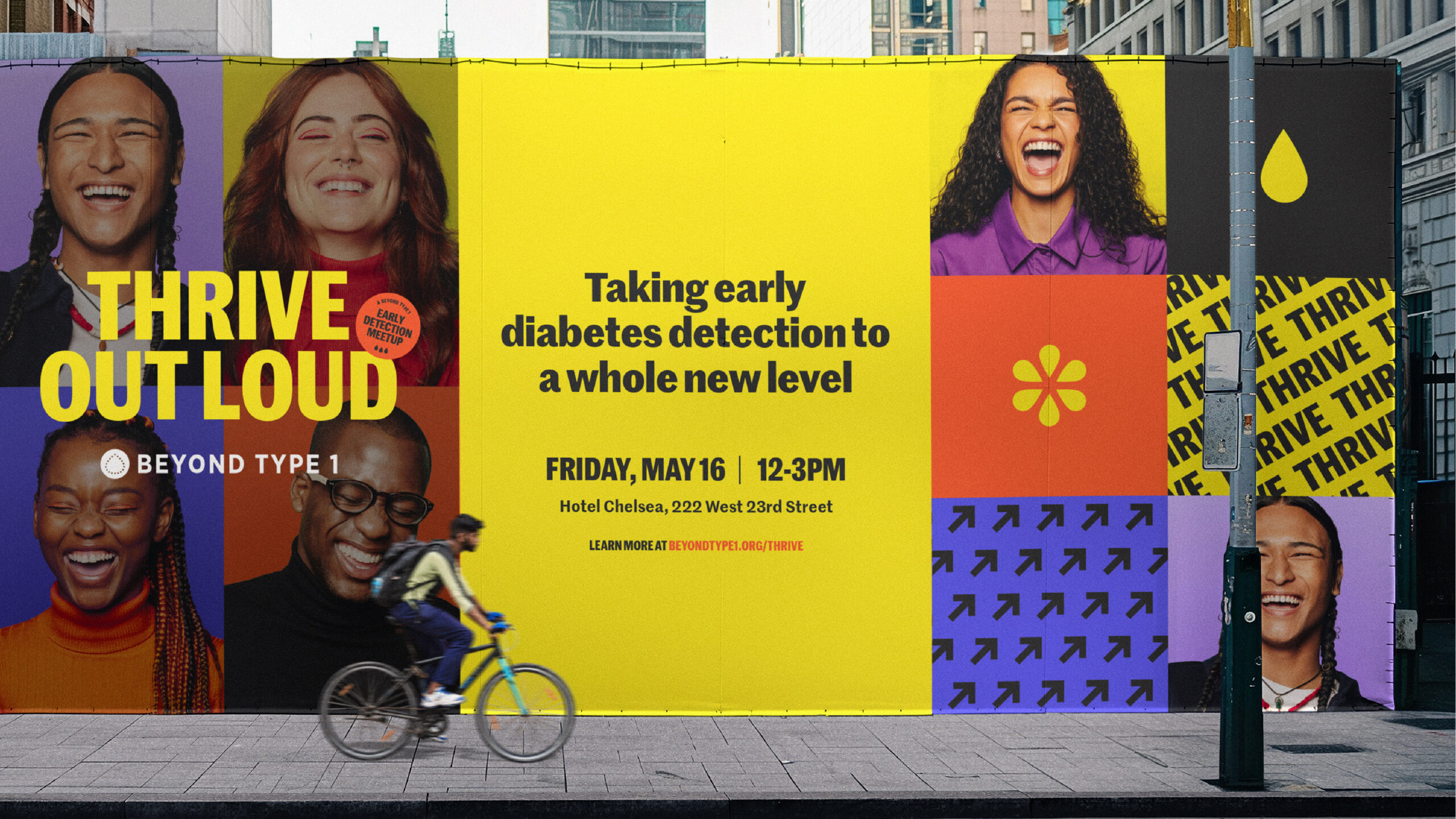 VSSL overhauled BT1’s digital presence, consolidating over 7,000 pages from four disparate sites into a cohesive, modern experience. The team developed 14 scalable page templates and a modular system that improved desktop page-load speeds by 250% and increased usability scores by 20%. - Bronze Award | Design, Identity System: Thrive Out Loud: A Beyond Type 1 Diabetes Meetup